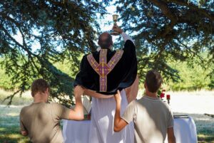 Les temps spirituels rythment nos journées, et sont des activités à part entière. Dès le matin, nous méditons à partir des Ecritures. Le chapelet est proposé chaque soir. La messe quotidienne est le centre de notre journée, célébrée dans la forme ancienne du rite romain, et de manière adaptée aux enfants. Un prêtre de la Société des Missionnaires de la Miséricorde Divine nous accompagne tout au long du camp, et anime également des temps de réflexion quotidiens.