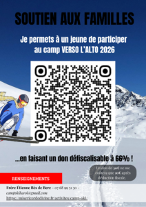 VERSO L'ALTO 2026, c'est 5 jours de ski et de prière pour collégiens et lycéens. Ce camp n'est pas une simple colonie de vacances, mais une vraie expérience spirituelle alliant sport, vie fraternelle, formation et prière dans le cadre magnifique de la montagne ! Pour fortifier nos corps et faire grandir nos âmes !